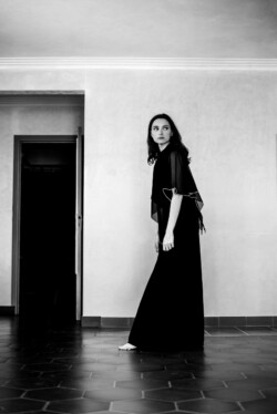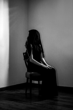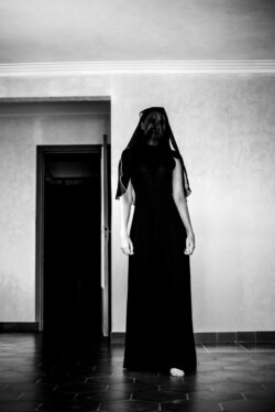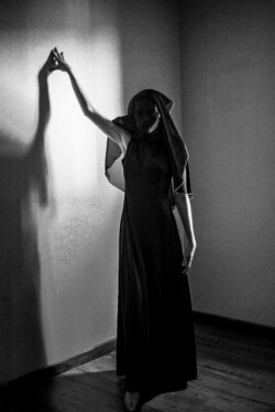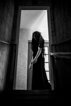 En photographiant en noir et blanc je tends à capturer la force et l’élégance de mes modèles, en créant des compositions visuelles qui attirent notre regard et éveillent notre curiosité. C’est une réflexion sur la fragilité et la vulnérabilité qui résident en chacun de nous, comme je le montre dans Agatha avec cette femme prisonnière et seule dans ce château presque post-apocalyptique : post-confinement. Cette femme qui rêve d’évasion. Elle déambule jour après jour dans les vestiges d’un manoir autrefois habité. Enfermée dans sa prison, elle attend un signe. Plongée dans le silence, elle attend un bruit.