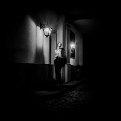L’obscurité offre un cadre mystérieux, presque onirique, dans lequel l’ombre et la lumière se rencontrent et où le réel et la fiction se mêlent.